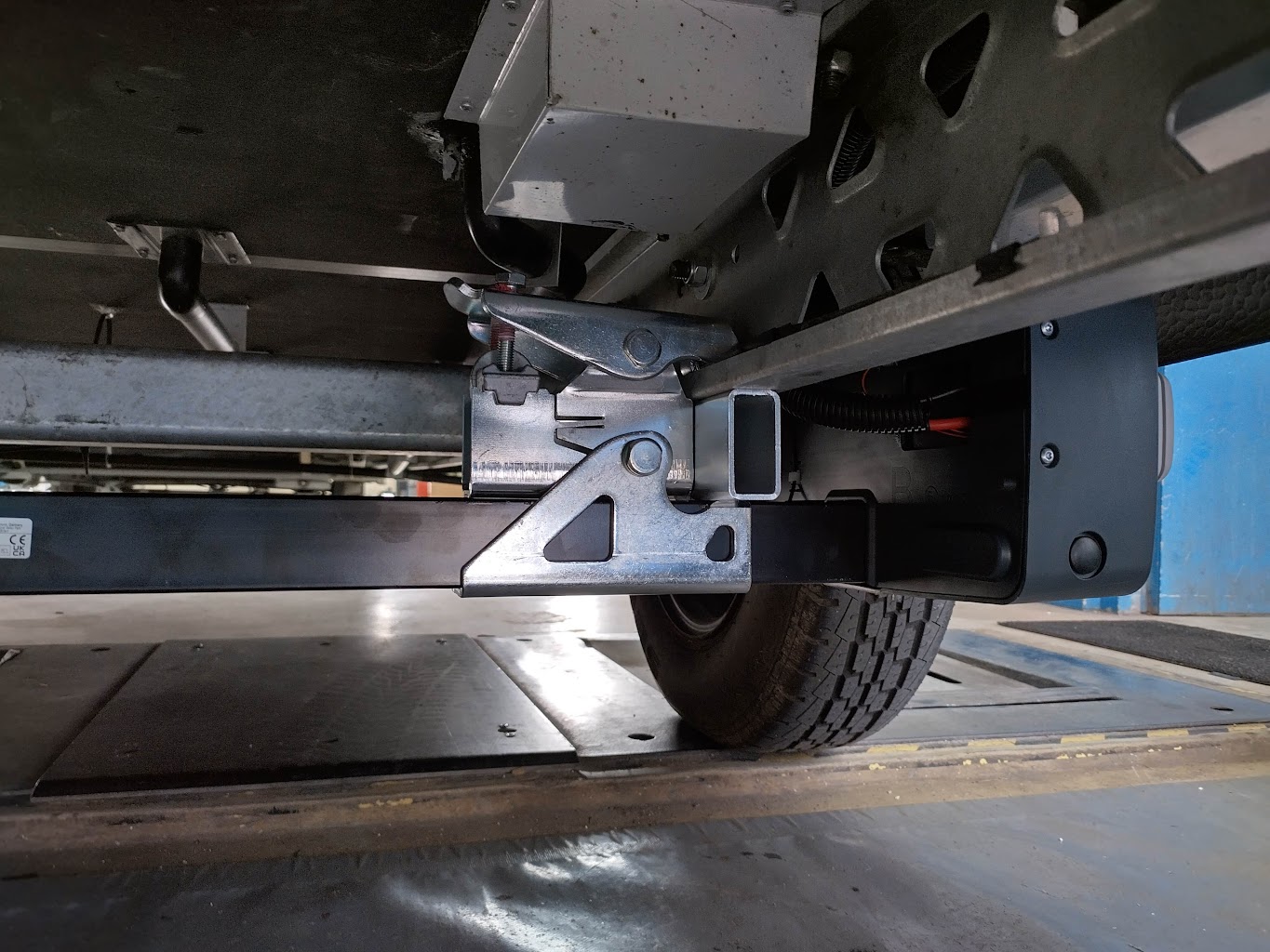 Ce mover a une hauteur de montage de seulement 13 cm et les moteurs sont sans balais. L'électronique vérifie si les deux moteurs font le même nombre de tours. Cela fait de ce déménageur le plus simple de tous les movers. Le moteur est plus efficace, en partie grâce à l'absence de vis sans fin. Normalement, cet engrenage à vis sans fin assure que la caravane reste immobile sur une pente, avec le Truma XT, cela est réalisé grâce à un frein intégré. Vous entendrez cela avant et après avoir commencé à manœuvrer. L'utilisation est confortable et vous pouvez contrôler la vitesse via le curseur.