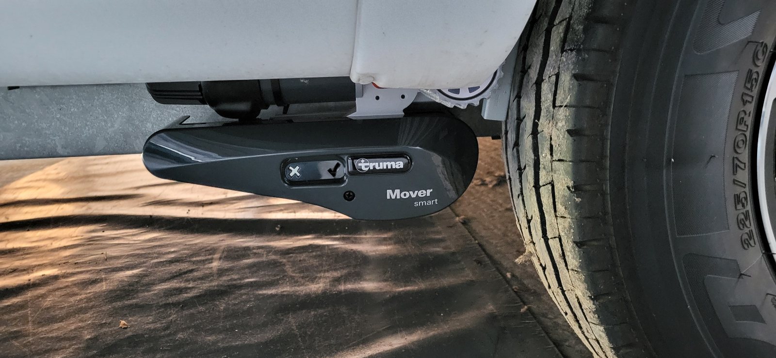 Le Truma Mover Smart A convient aux caravanes à caravane. La fonction de softstart et softstop pour le démarrage et l'arrêt sans chocs permet la manoeuvre simple dans un espace réduit. L'opération est avec une télécommande (868 MHz) avec des boutons poussoirs. Le système peut tourner sur 360 degrés.